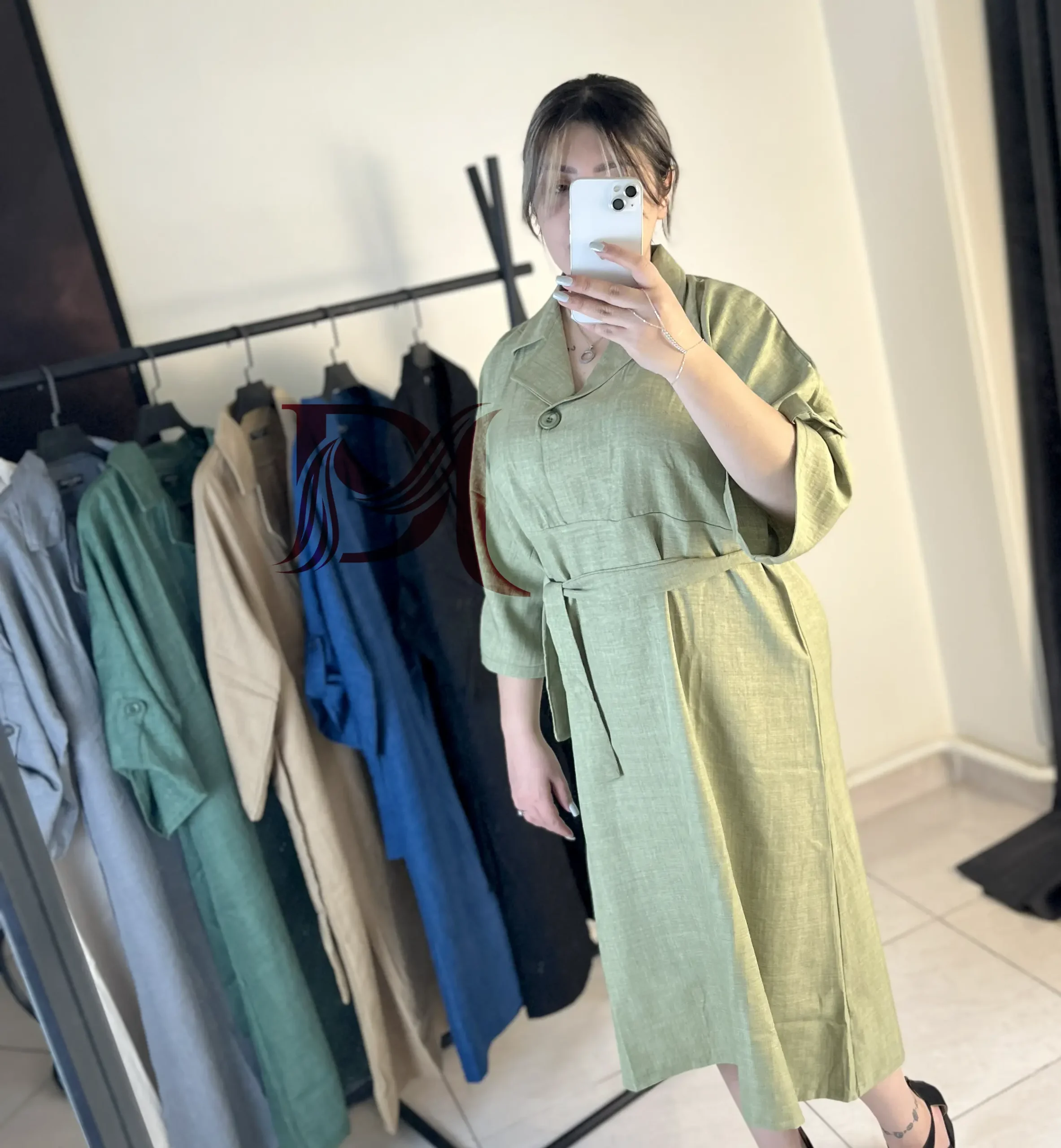 - نوع دوخت: آزاد و راحت، کمردار برای تنظیم فرم